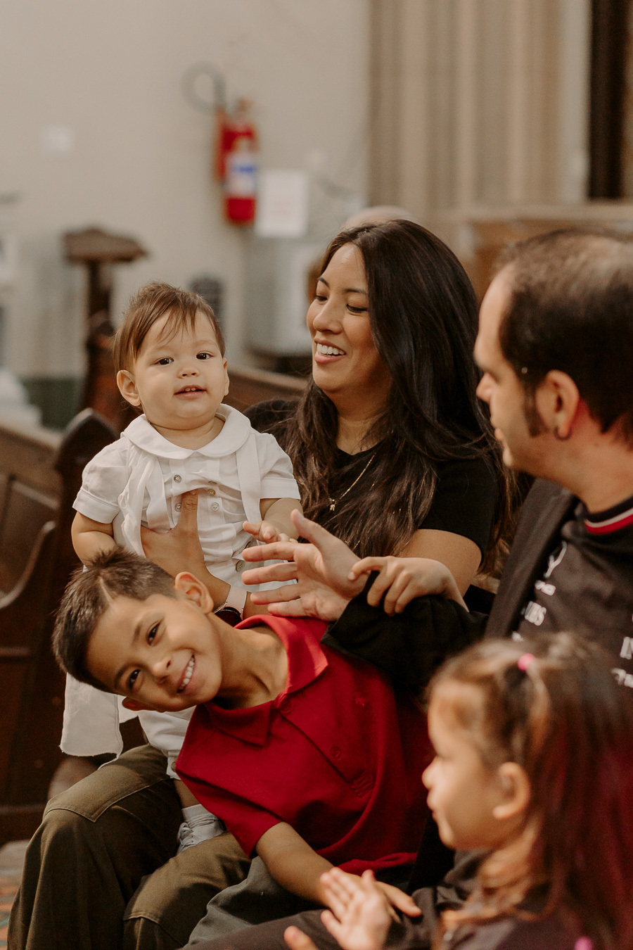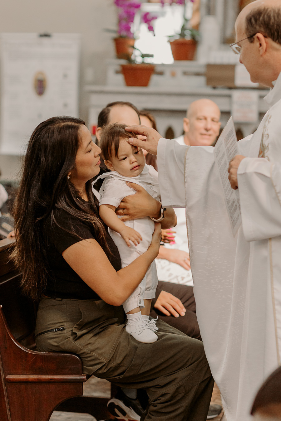 Um momento especial de fé e união familiar, fotografado de forma natural e cuidadosa, valorizando os detalhes, as emoções e a importância desse dia.