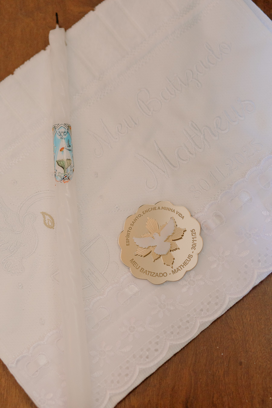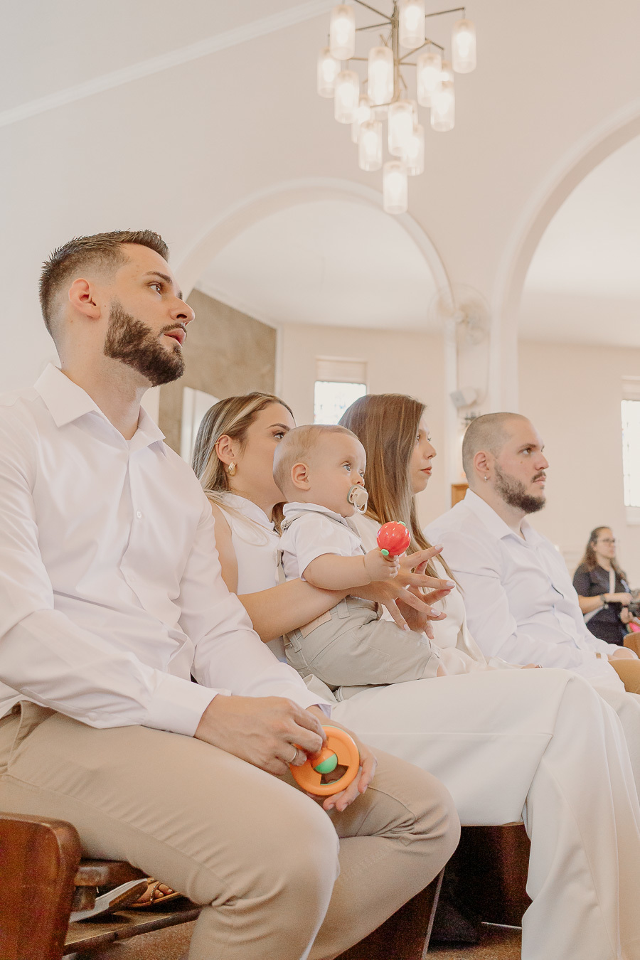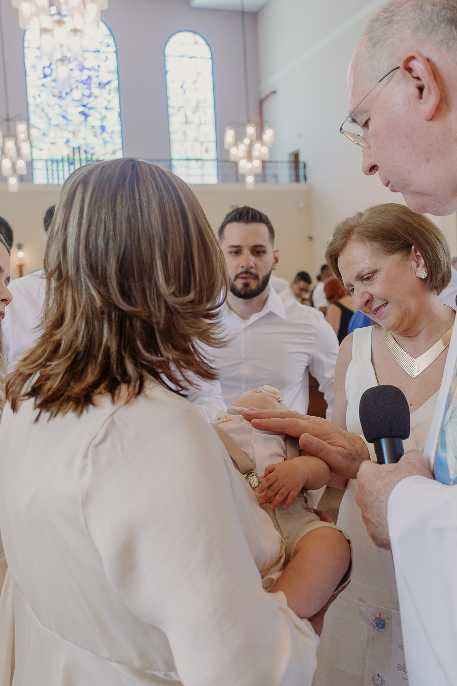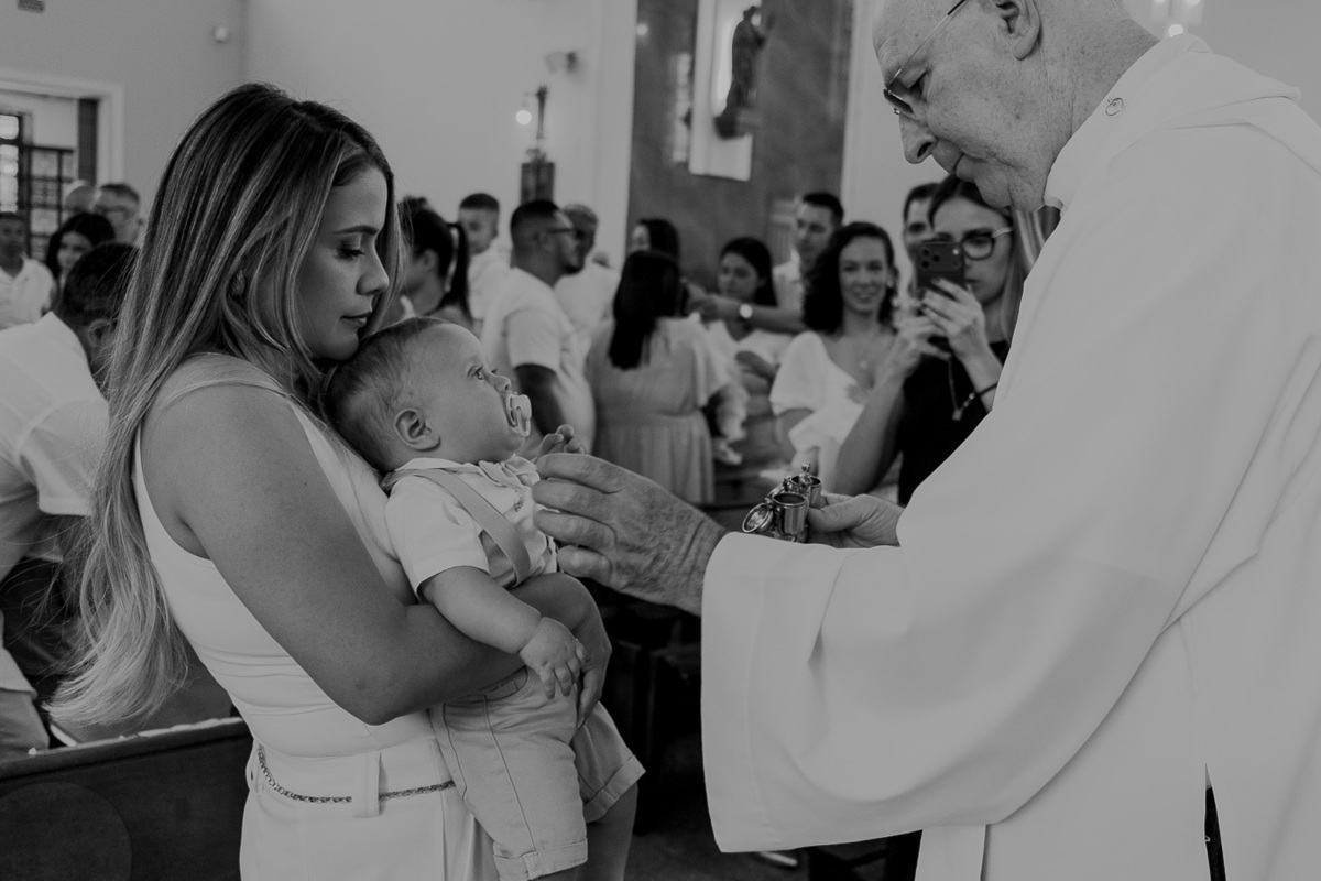 Um momento único, cercado pela família e por pessoas especiais, celebrando a bênção e o início de uma caminhada guiada por proteção e esperança.