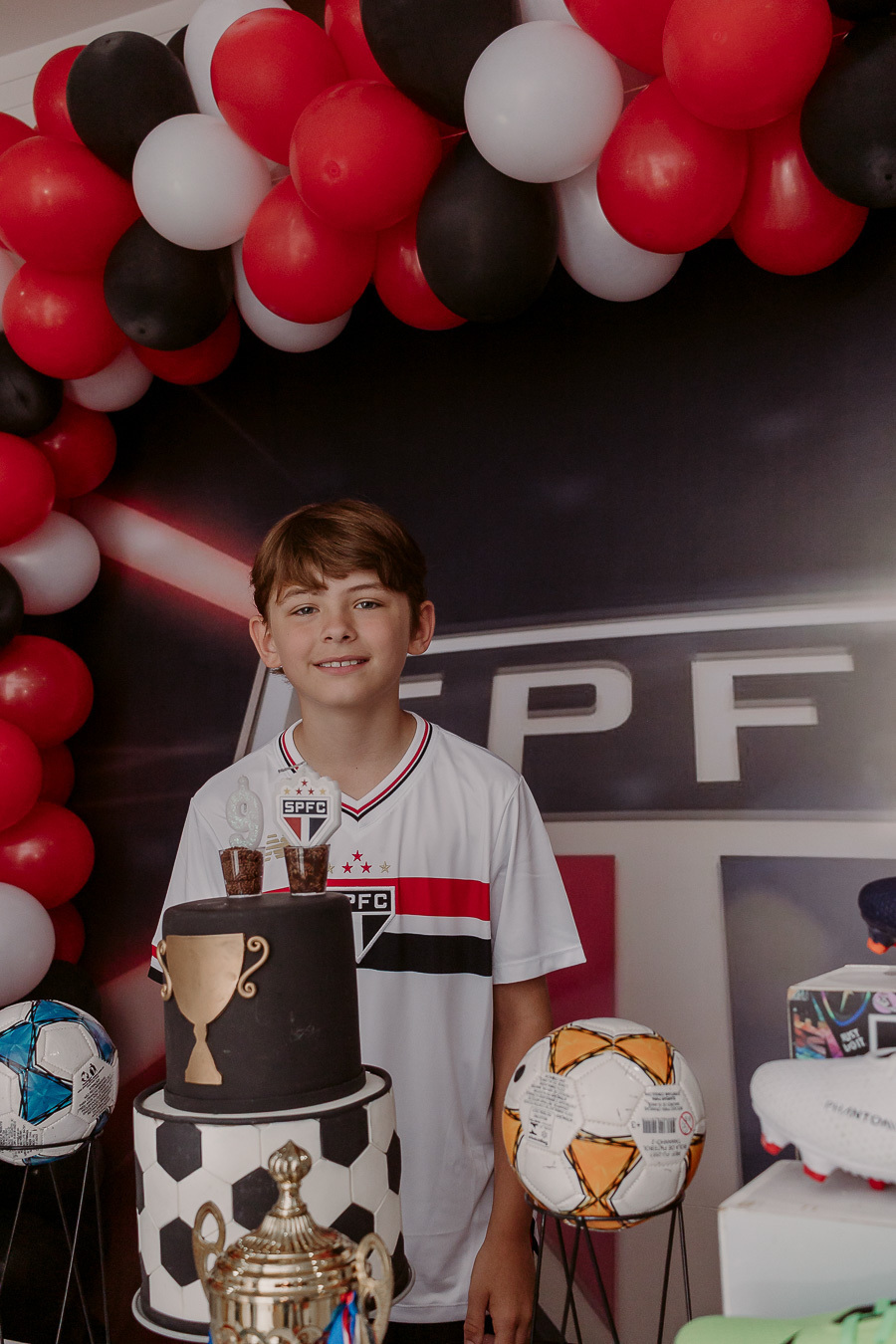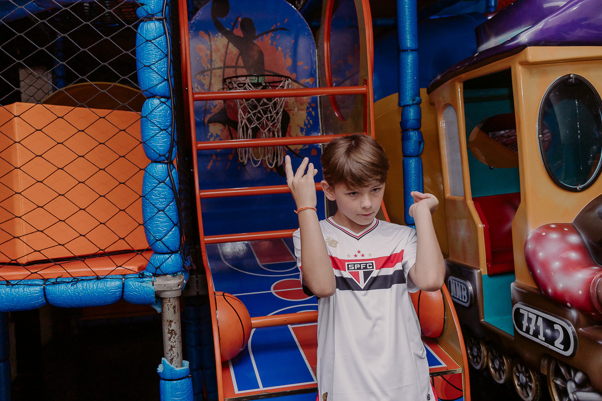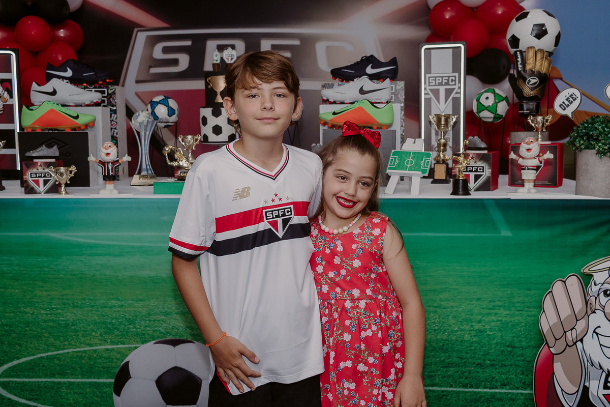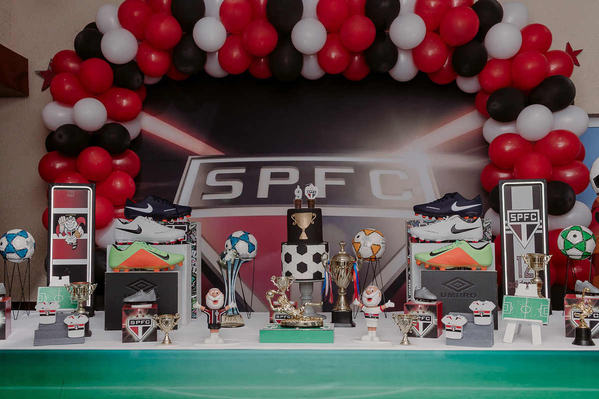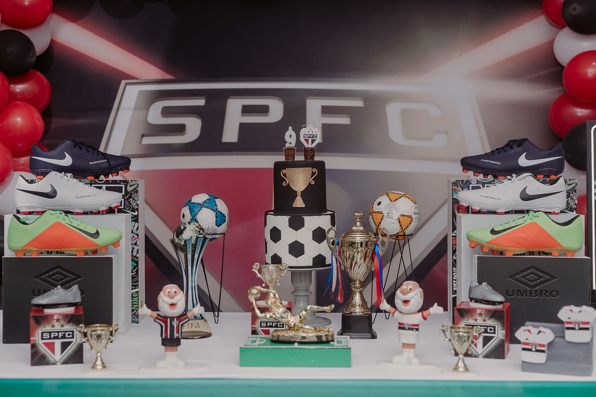 A festa de 9 anos do Frederico teve como tema o amor pelo seu time de coração, o São Paulo Futebol Clube. Com uma decoração inspirada nas cores e no escudo do time, a comemoração foi marcada por momentos descontraídos, muita animação e a energia típica de quem vive intensamente essa fase da infância.