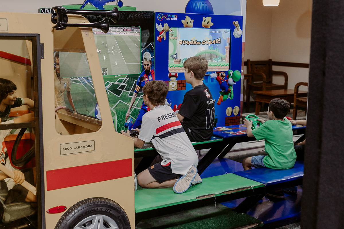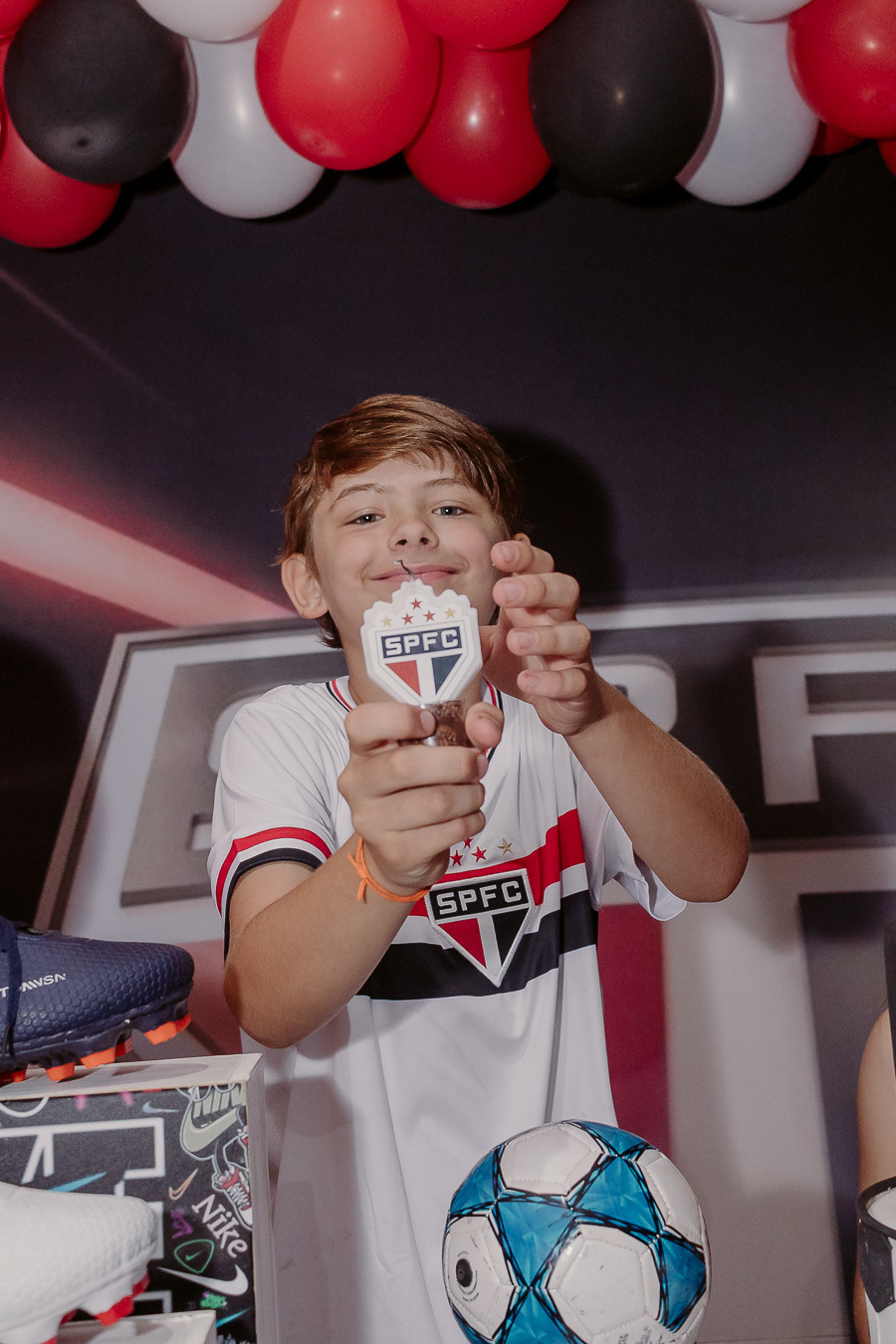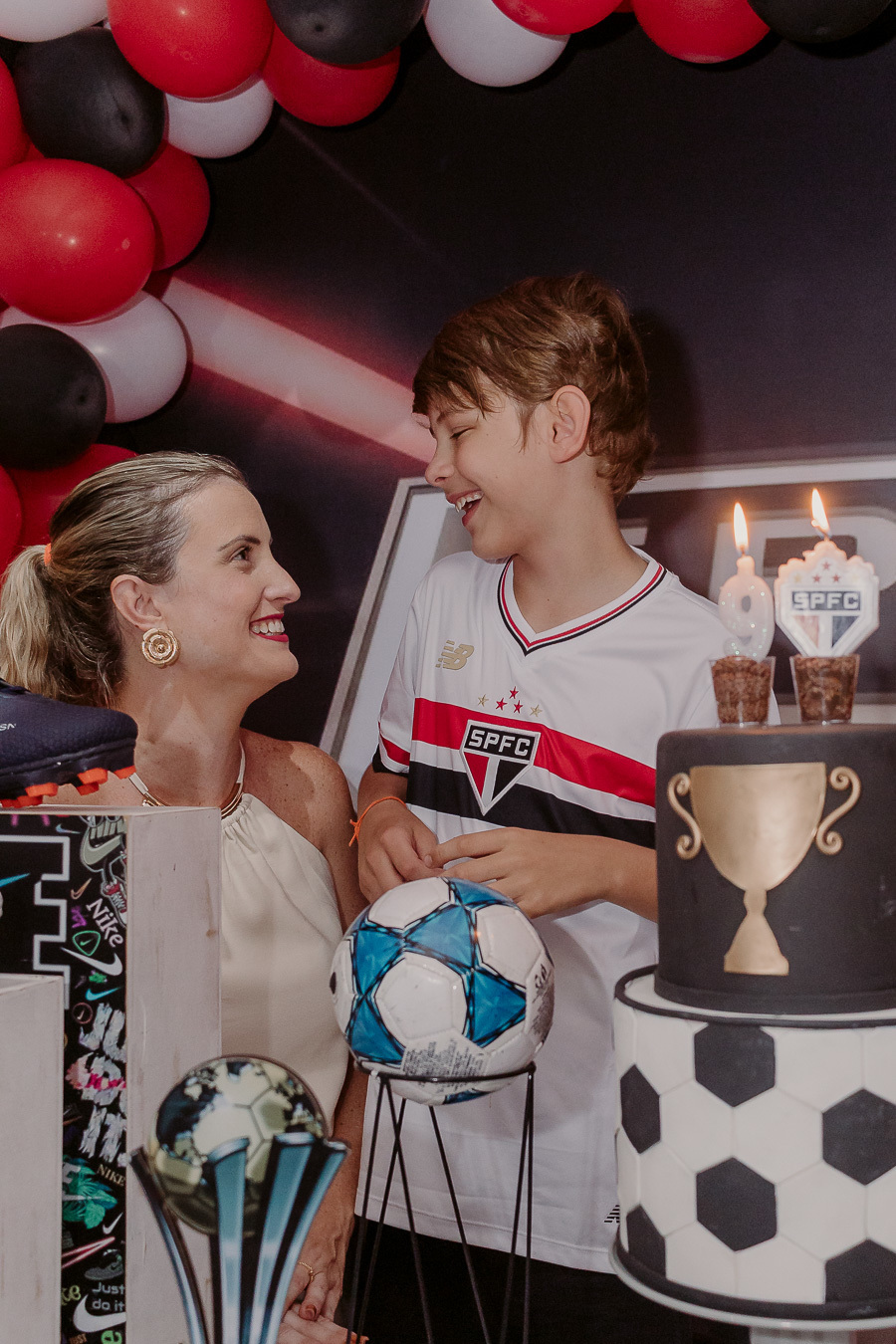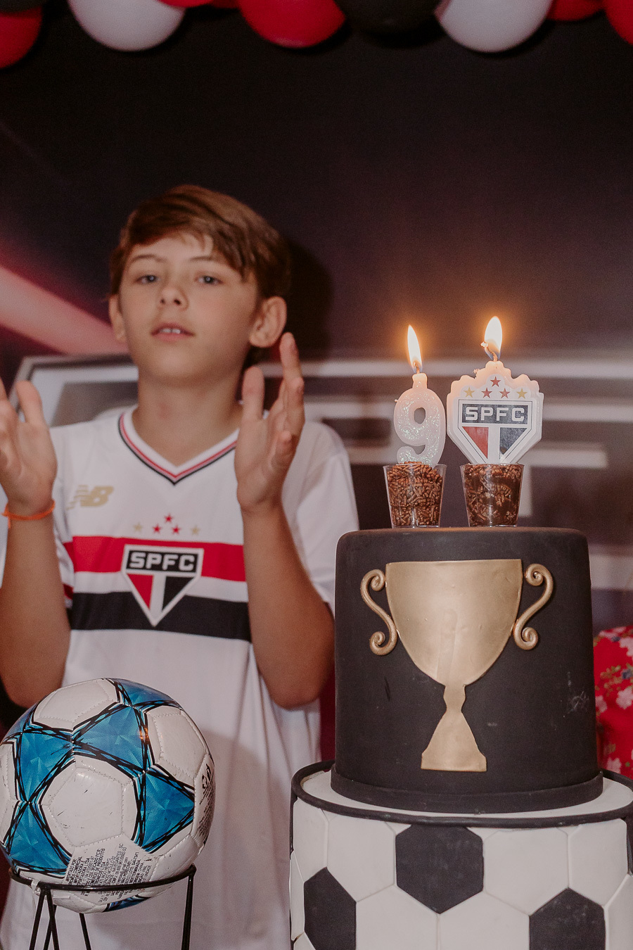 A festa de 9 anos do Frederico teve como tema o amor pelo seu time de coração, o São Paulo Futebol Clube. Com uma decoração inspirada nas cores e no escudo do time, a comemoração foi marcada por momentos descontraídos, muita animação e a energia típica de quem vive intensamente essa fase da infância.