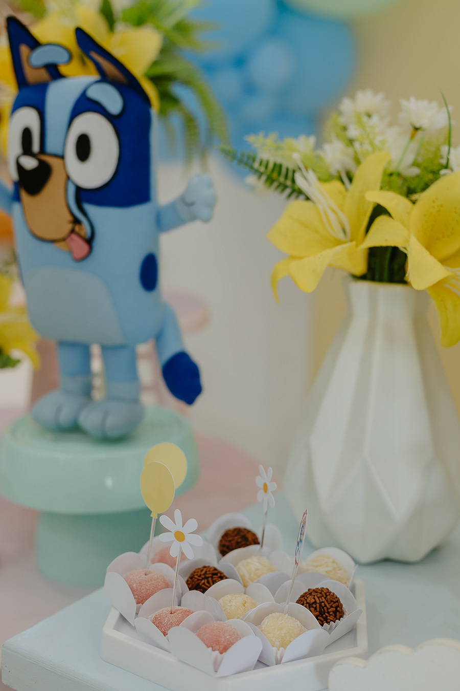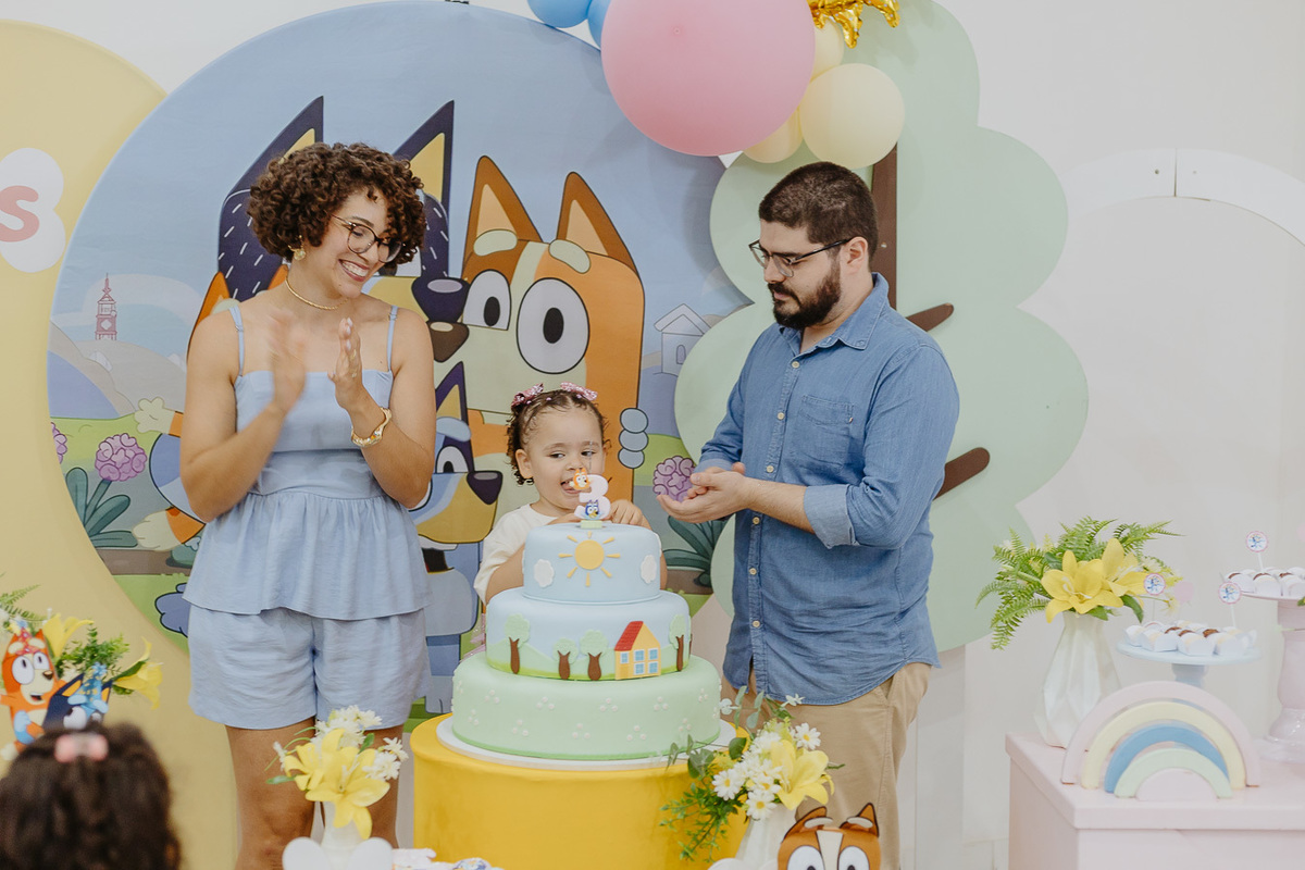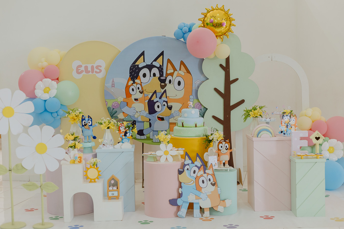 Com o tema da Bluey, tudo foi pensado com muito carinho — cores suaves, elementos delicados e uma decoração cheia de personalidade, que trouxe ainda mais leveza e alegria para o ambiente.
